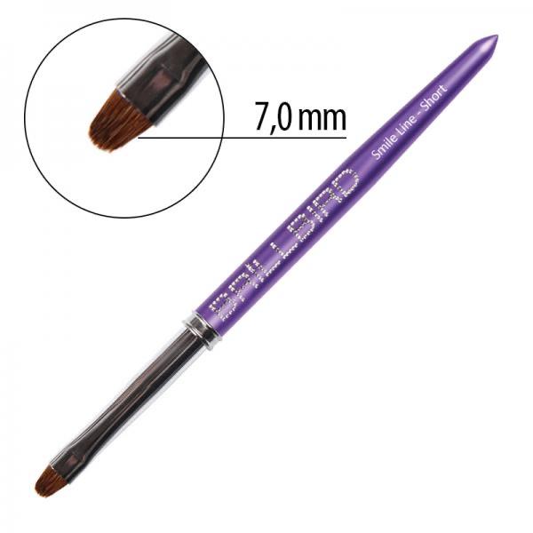 Natural hair curved gel brush with a rounded tip. Its head is shorter than the original Smile Line brush, but has the same high quality. Can be used for builder or coloured gels.